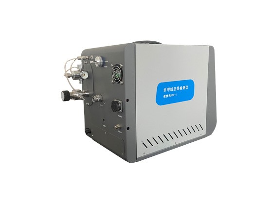 ?樣品導入JH-NMHF60便攜式甲烷/非甲烷總烴氣相色譜儀后,同時定量注入總烴檢測單元和甲烷檢測單元(通過色譜柱分離后進入FID檢測),分別測定總烴和甲烷的含量,兩者之差 即為非甲烷總烴的含量。