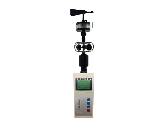 手持式(五參數(shù))氣象站采用結(jié)構(gòu)式小風(fēng)標(biāo),風(fēng)杯,溫濕壓傳感器,由采集板進(jìn)行氣象要素的采集,存儲(chǔ),可通過(guò) USB 接口將數(shù)據(jù)下載到電腦,使用專(zhuān)用軟件對(duì)數(shù)據(jù)進(jìn)行分析。